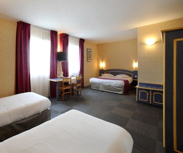 Spacieuses (26 à 42 m²), climatisées et insonorisées, les chambres familiales pour 4 personnes disposent d'un grand lit de 160 et de deux lits de 90. Idéales pour une famille avec deux enfants, les chambres sont équipées d' une télévision LED Full HD de 82 cm avec satellite, de l'accès à internet, et d'une salle de bain tout confort. Egalement présent un plateau de courtoisie avec café, thé, infusions
