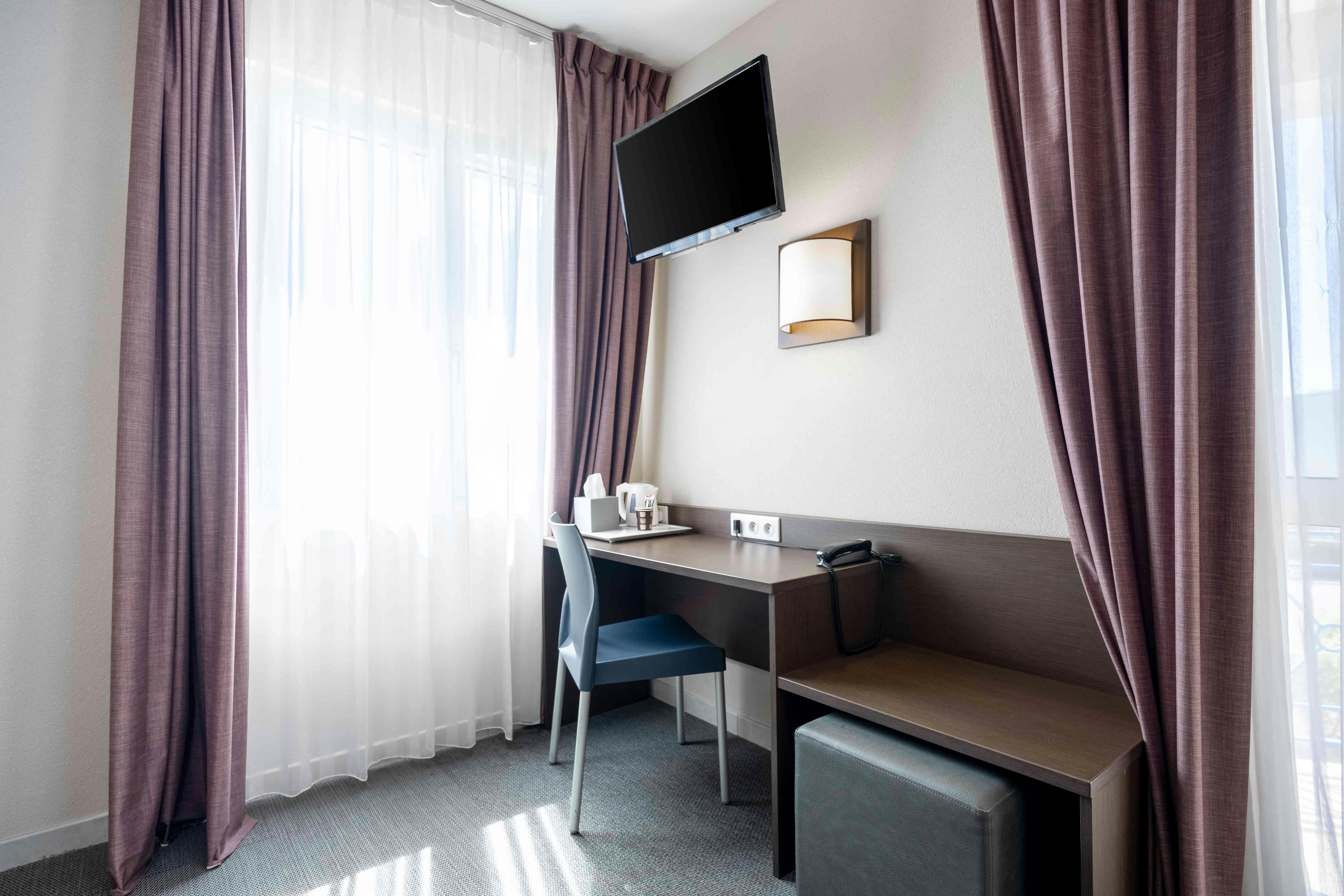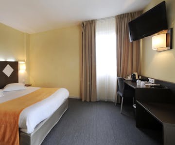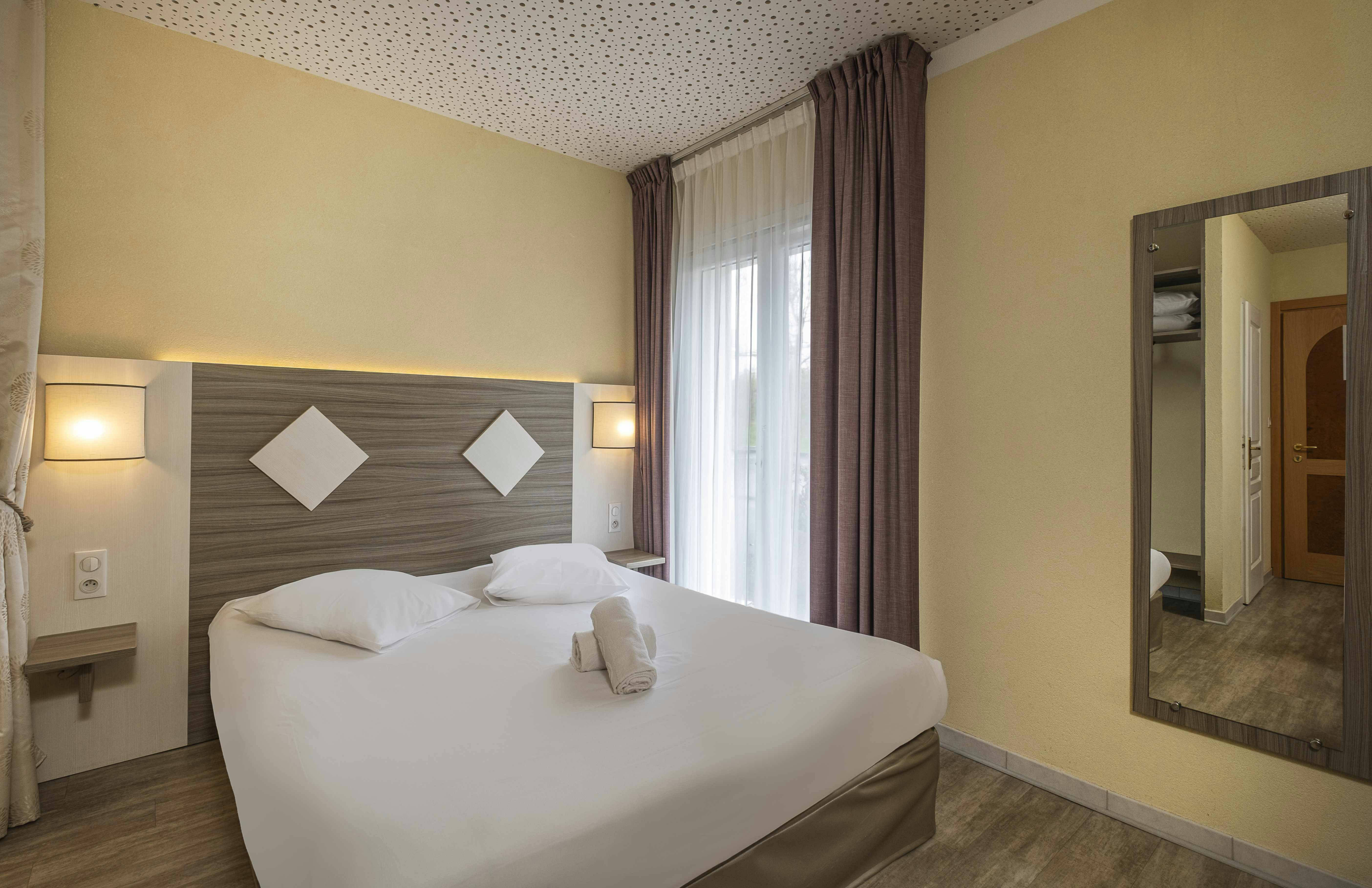 Spacieuses (18 m²), climatisées et insonorisées, les chambres pour 1 ou 2 personnes disposent d'un lit de 160. Ces chambres sont équipées d' une télévision LED Full HD de 82 cm avec satellite, de l'accès à internet, d'un WC séparé, d'une salle d'eau tout confort, ainsi que d'un plateau de courtoisie (thé, infusion, café,...).